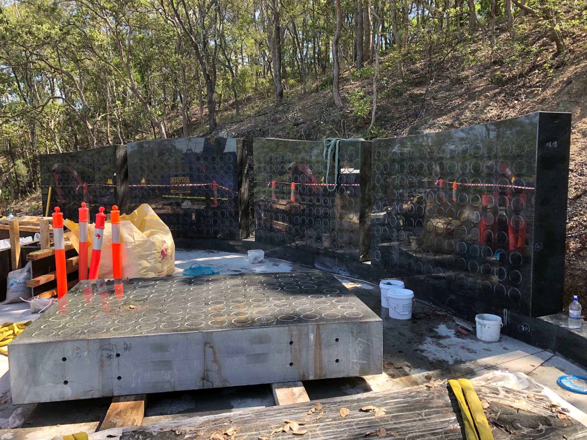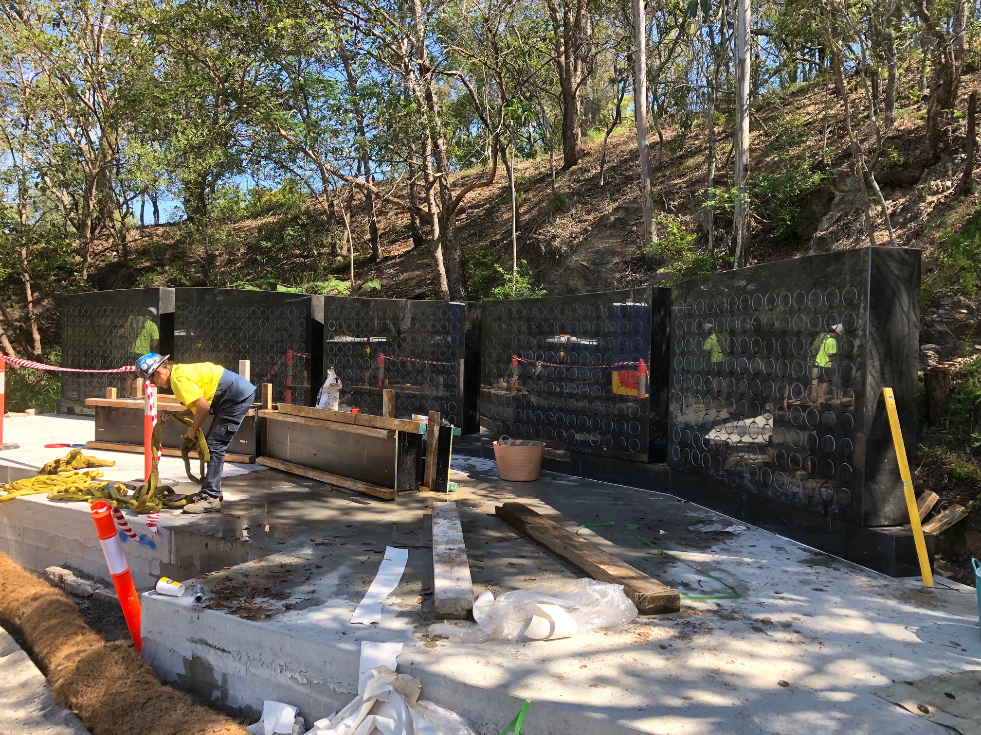 These walls are an average of 2.43m long by 1.75m high and 0.4m thick and an average weight of 5,000kg each.